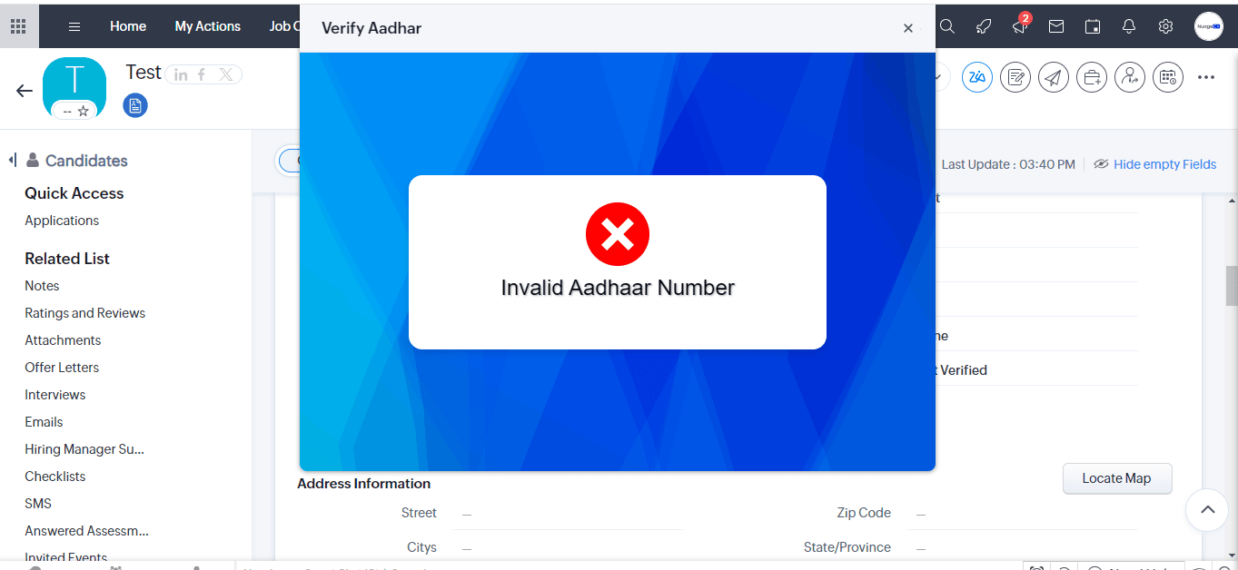 So here, you can only verify the individual PAN card details. Here we are providing manual validation for the Candidates module by using the button.